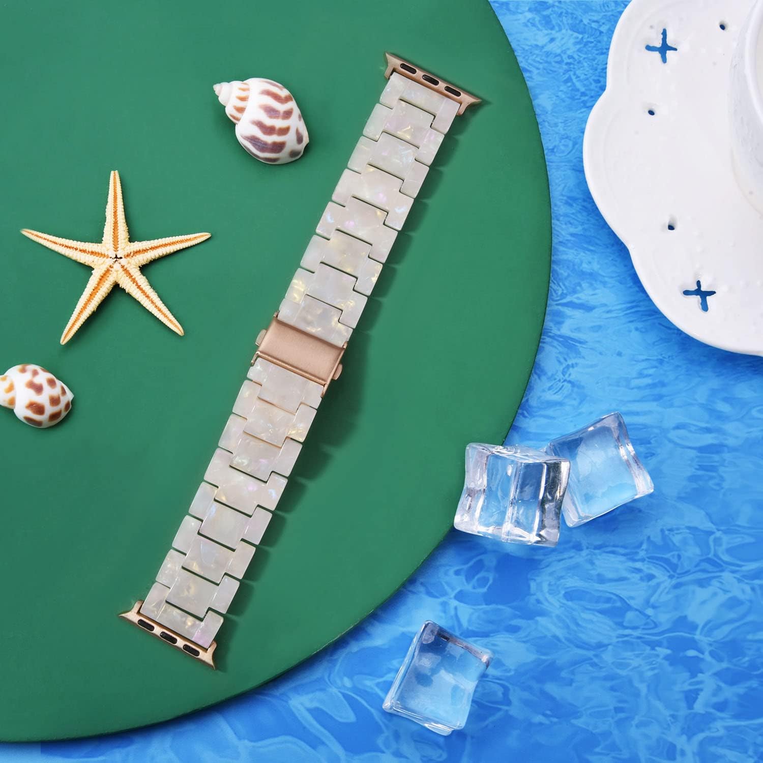 🎅Stylish Colorful Design – This elegant Apple band 40mm features a milky white base with subtle colorful speckles that create a soft pearlescent effect. The resin surface catches light beautifully, showing delicate color reflections from different angles while maintaining its primarily creamy white appearance.