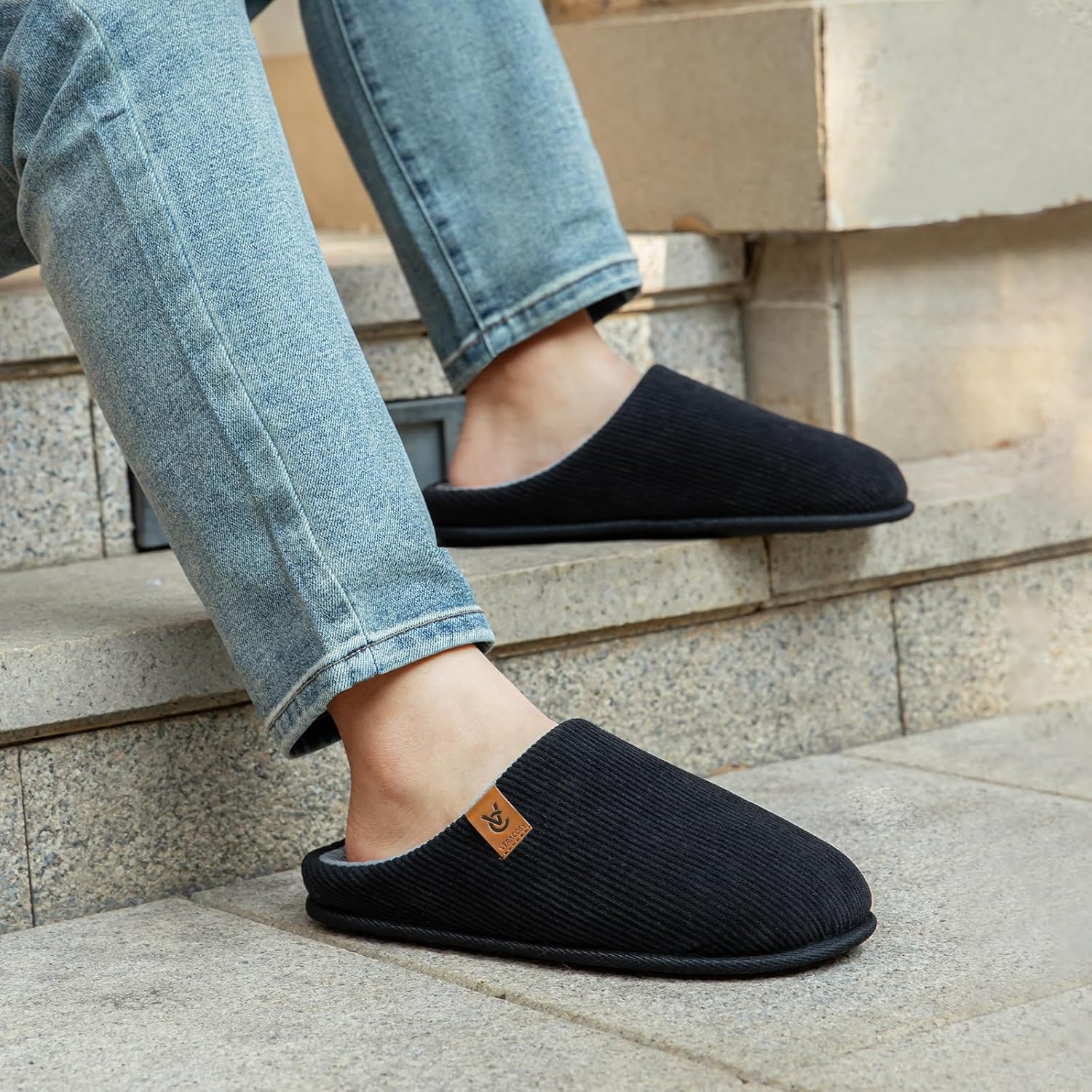 VeraCosy Men’s Cozy Slip-on Slippers Corduroy Memory Foam Indoor House Shoes