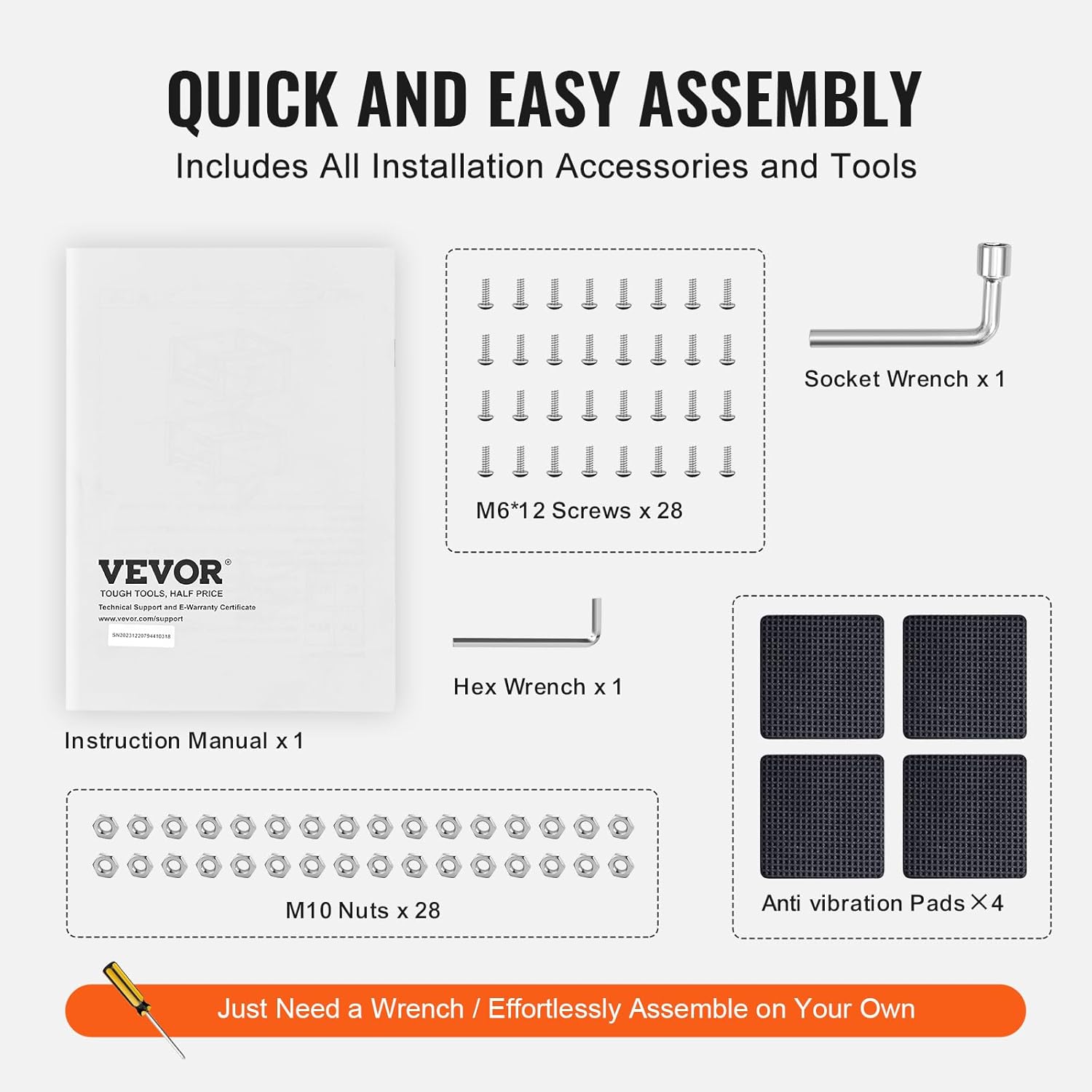 ‎EVA Shock Absorption Pads x 4, Hex Wrench (Allen Key) x 1, Instruction Manual x 1, Laundry Pedestal x 1, Socket Wrench x 1 |