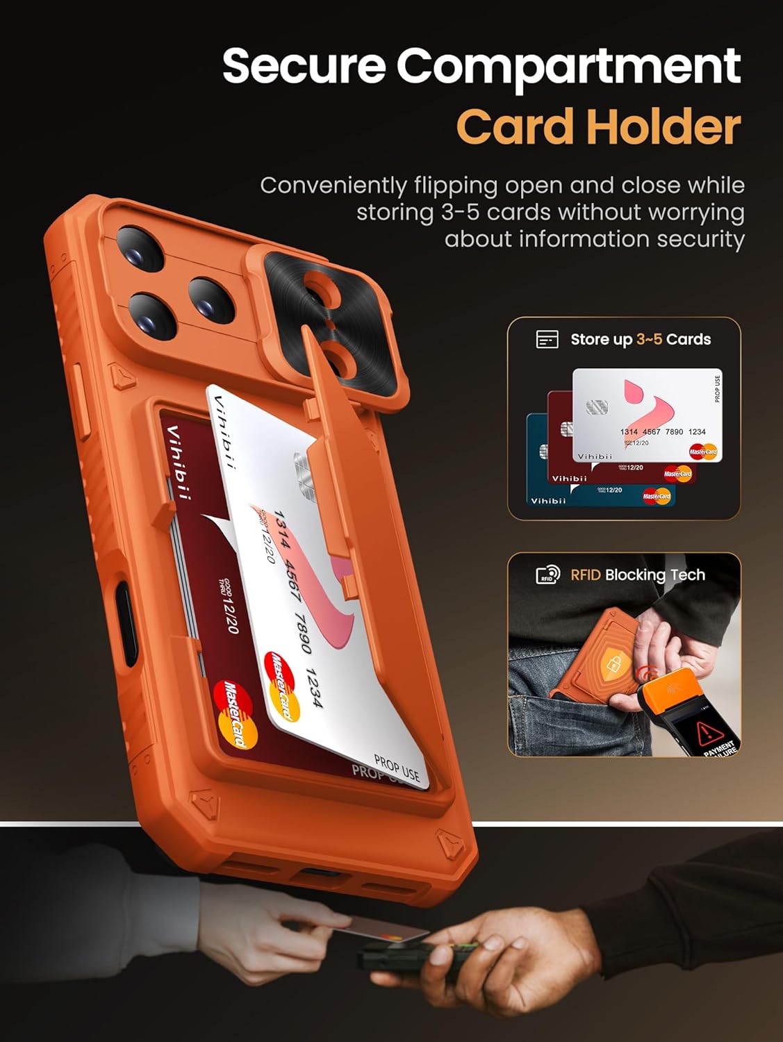 Buy Vihibii for iPhone 17 Pro Max Case with Card Holder (4 Cards) [RFID Blocking] & Slide Camera Cover, Military Grade Drop Protection, Rugged Hard Back & Silicone Edge Wallet Phone Case 6.9″ 2025, Orange online from amazon or ebay or walmart Vihibii for iPhone 17 Pro Max Case with Card Holder (4 Cards) [RFID Blocking] & Slide Camera Cover, Military Grade Drop Protection, Rugged Hard Back & Silicone Edge Wallet Phone Case 6.9″ 2025, Orange
