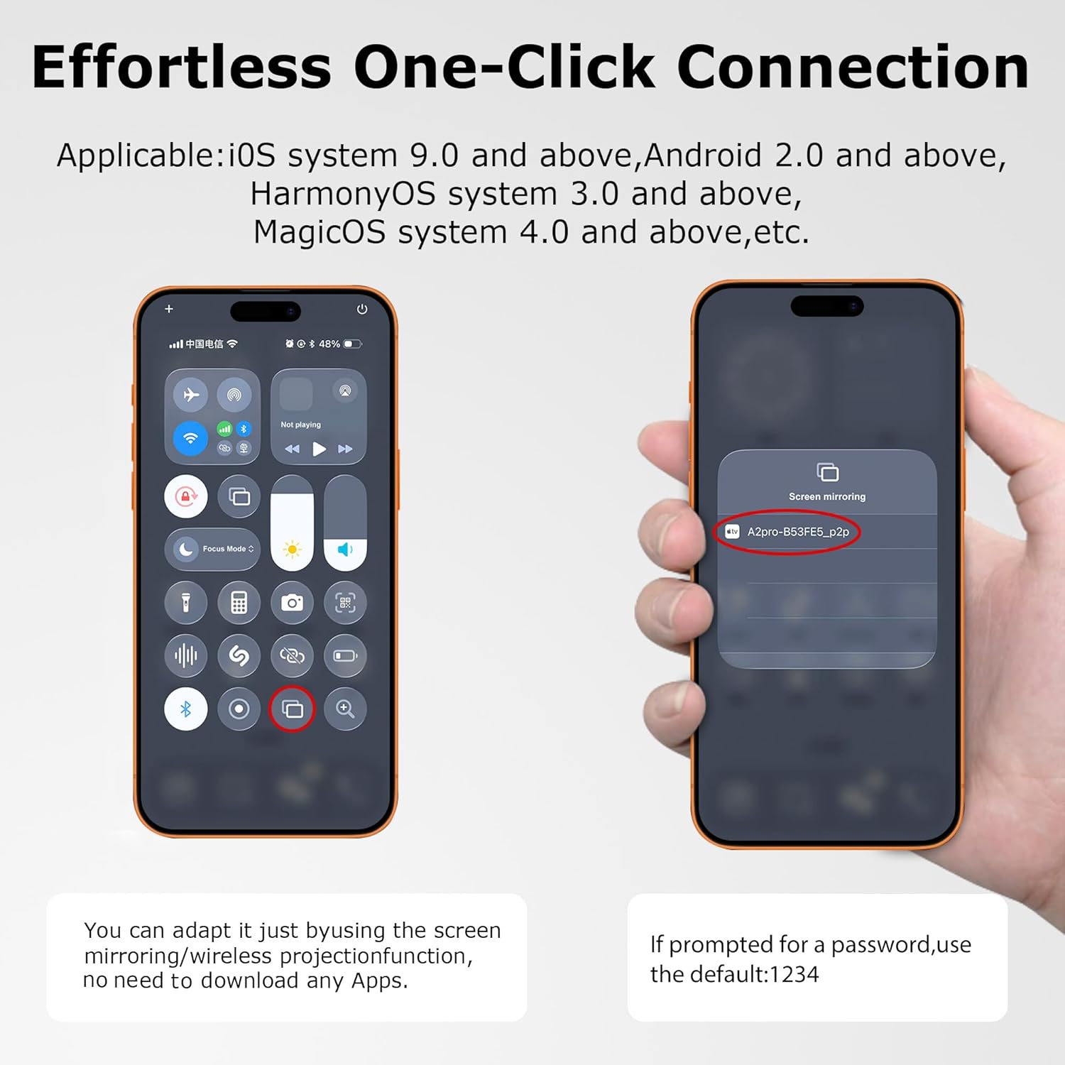 【Wireless Magnetic Portable Design】 This 4-inch monitor features an ultra-strong built-in magnet for a secure and instant attachment to iPhone 12-17 /17 pro models. For other smartphones, use the included metal plate for a reliable magnetic hold. If your iPhone is in a case, attach the included metal ring to the back of the case for optimal magnetic performance. Be sure to remove the adhesive backing from the metal ring first to ensure a strong and stable connection between the magnetic screen and your phone.
