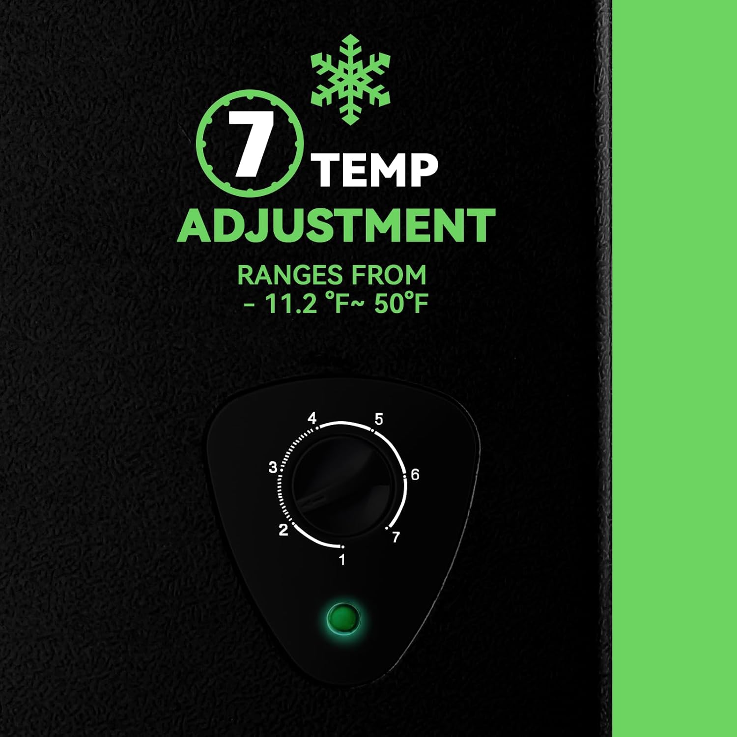 SEVEN TEMPERATURE ADJUSTMENT BUTTON: With the temperature adjustment buttons one to seven , you can adjust the temperature range from -11.2 °F to 50 °F to meet your various food storage conditions