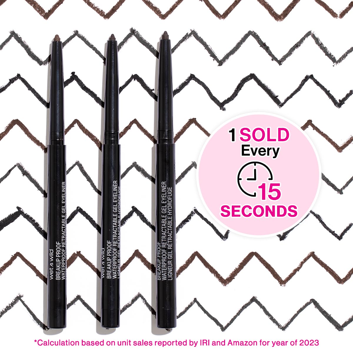 wet n wild Mega Last Breakup Proof Retractable Eyeliner – Ultra-Fine Brush, Waterproof,16-Hour Long-Lasting Wear – Cruelty-Free & Vegan – Black