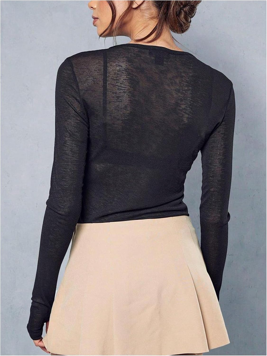 Women’s Sheer Mesh Long Sleeve T Shirts Boat Neck Slim Fit Tee Tops Going Out See Through Shirts