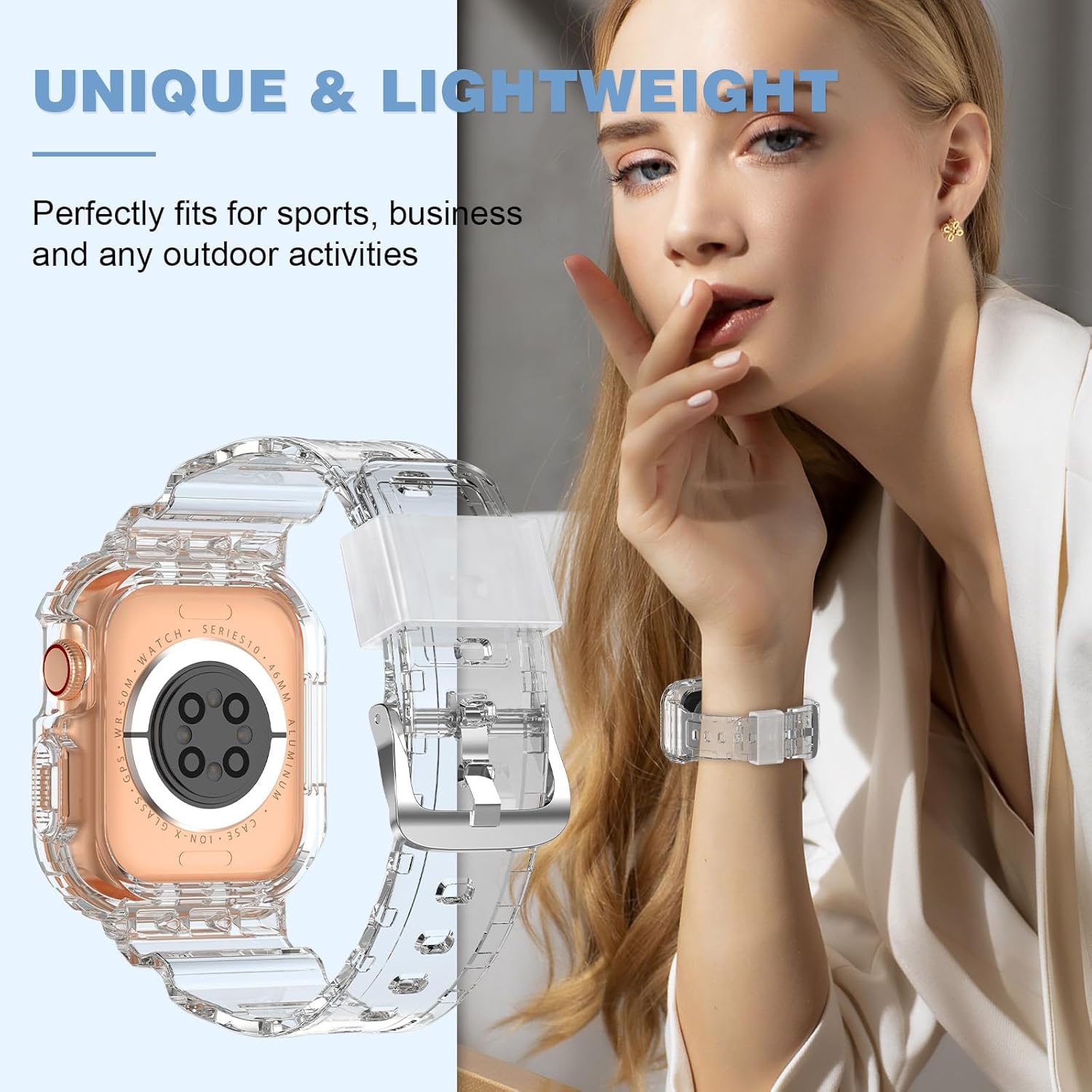 XYF Compatible for Crystal Clear Apple Watch Bands, 49mm 46mm 45mm 44mm 42mm 41mm 40mm 38mm Bumper Case for Men Women Jelly Sport Cover Strap for iWatch Ultra 3 2 Series 11 10 9 8 7 SE 6 5 4 3