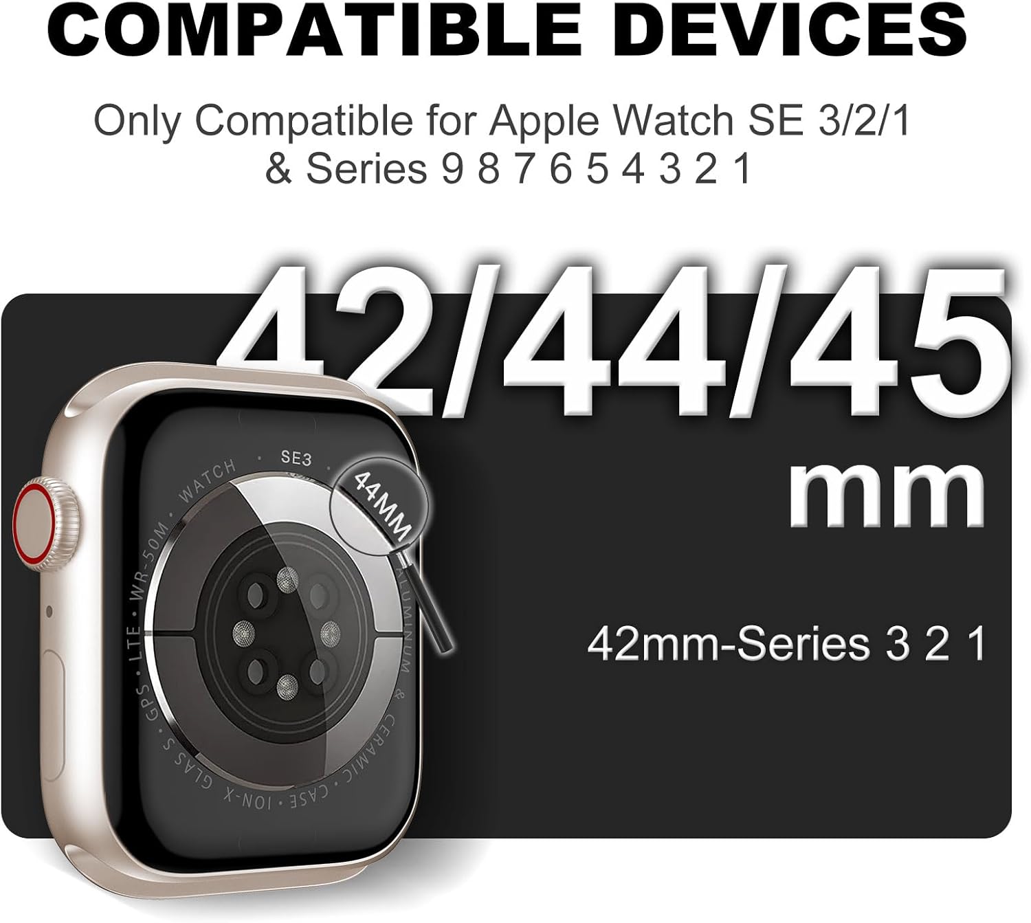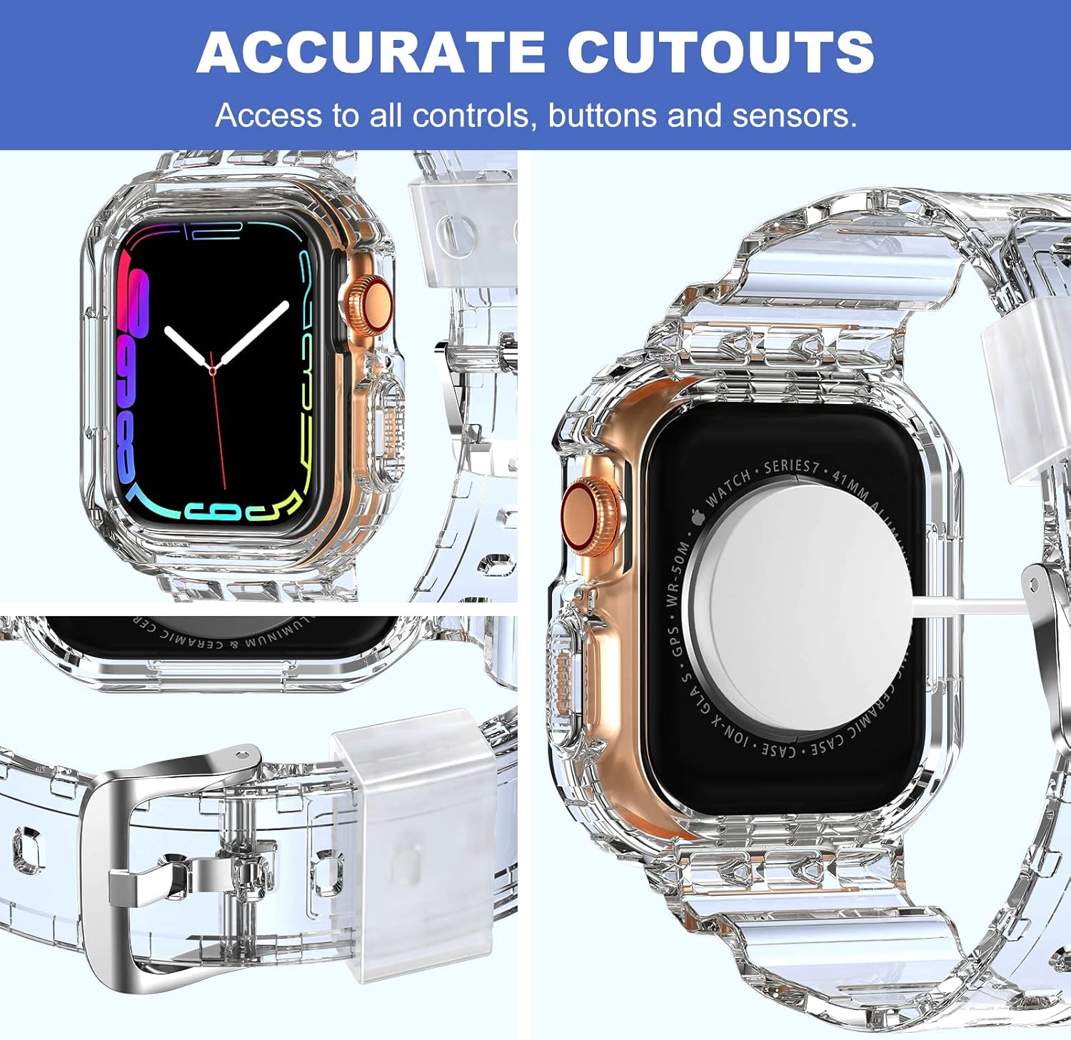 Compatible Crystal Clear Apple Watch Band is fully adjustable and fits wrist sizes from 5.7″ to 8.7″ (145mm-220mm).